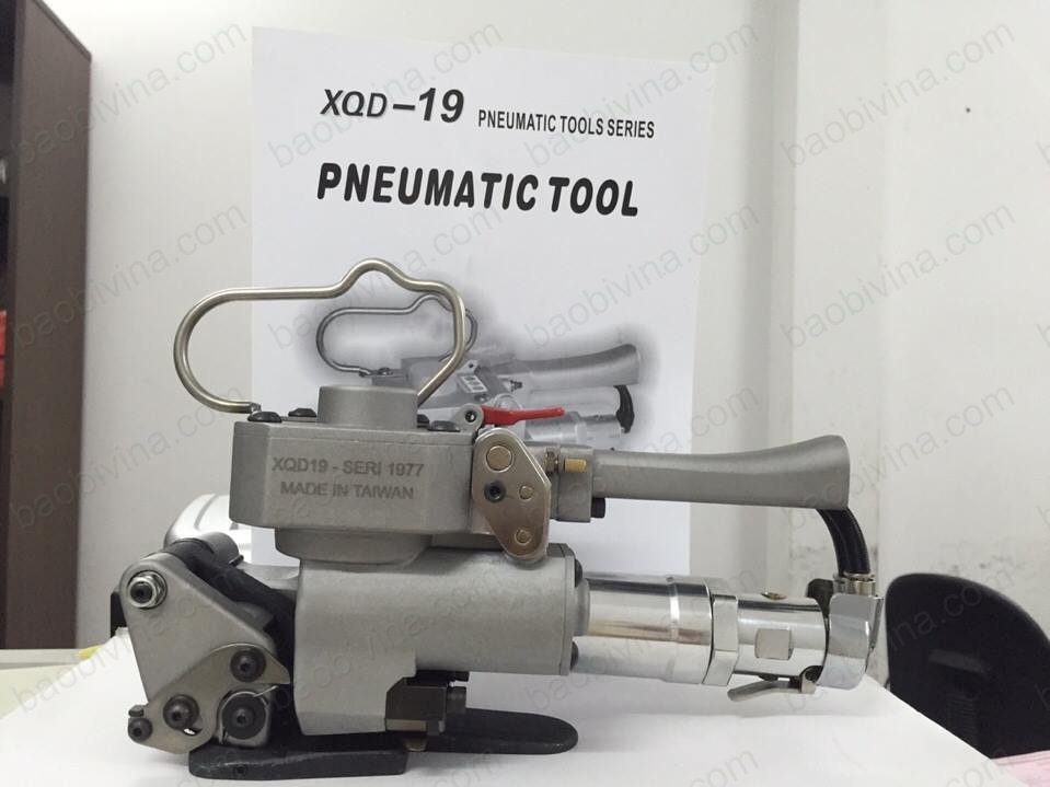 - Máy đóng đai khí nén XQD-19 dùng băng nhiệt ma sát kết hợp 3&1( căng ,bấm ,cắt ) với kích thước khá nhỏ gọn giúp thao tác dễ dàng .